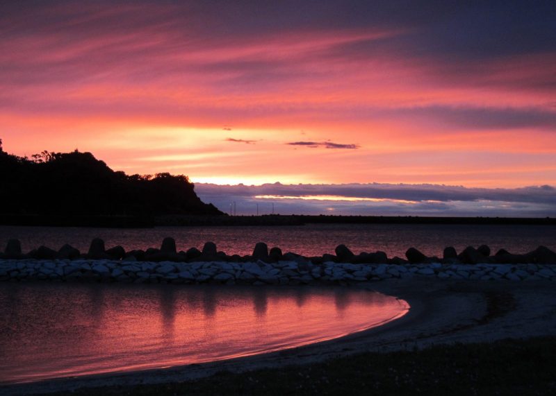 浜坂海岸は岸田川の砂礫と海の作用でできた砂浜で、背後に水田地帯が広がります。松葉ガニやホタルイカの水揚げ港があり、砂防林「松の庭」は保護活動により「恋人の聖地百選」に選定。夏はキャンプや海水浴、石ころ採集も楽しめ、県民と観光客に親しまれる海のリゾートです。