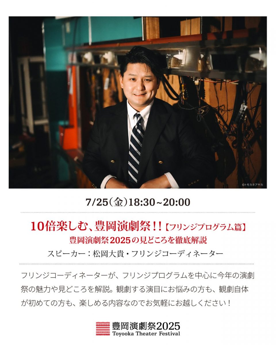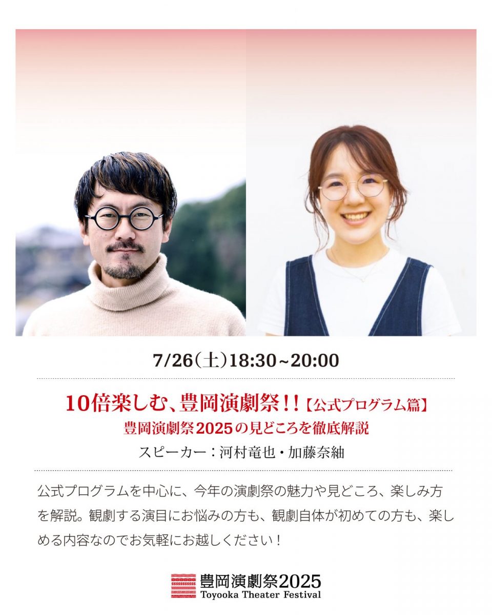 公式プログラムを中心に今年の演劇祭の魅力や見どころ、楽しみ方を解説。昨年も開催し好評を博しました!観劇する演目にお悩みの方も、観劇自体が初めての方も、楽しめる内容なのでお気軽にお越しください!