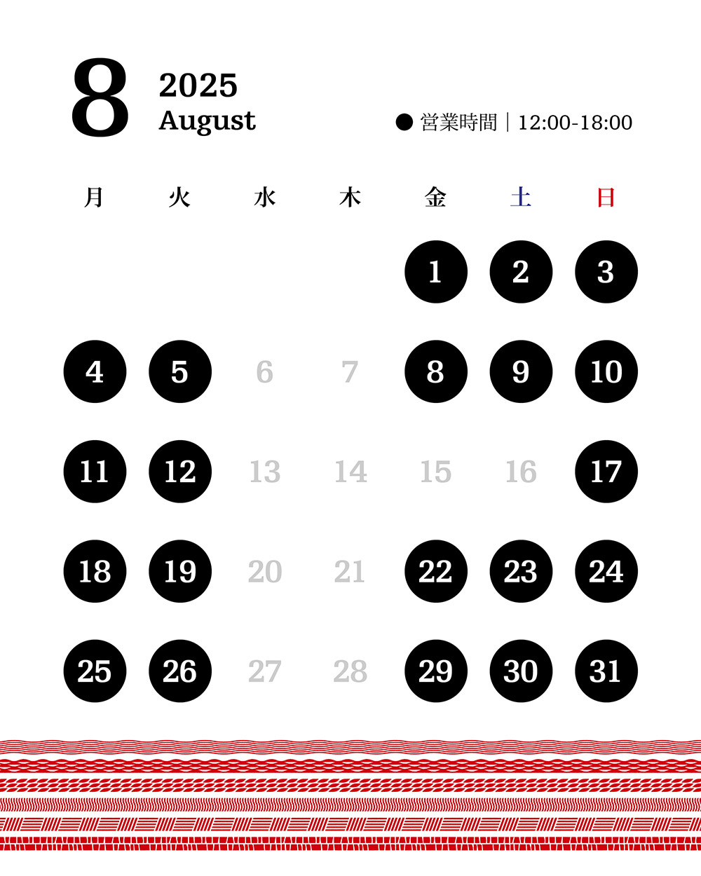 - 12:00-18:00 (定休日:7/25~9/10までの水・木)